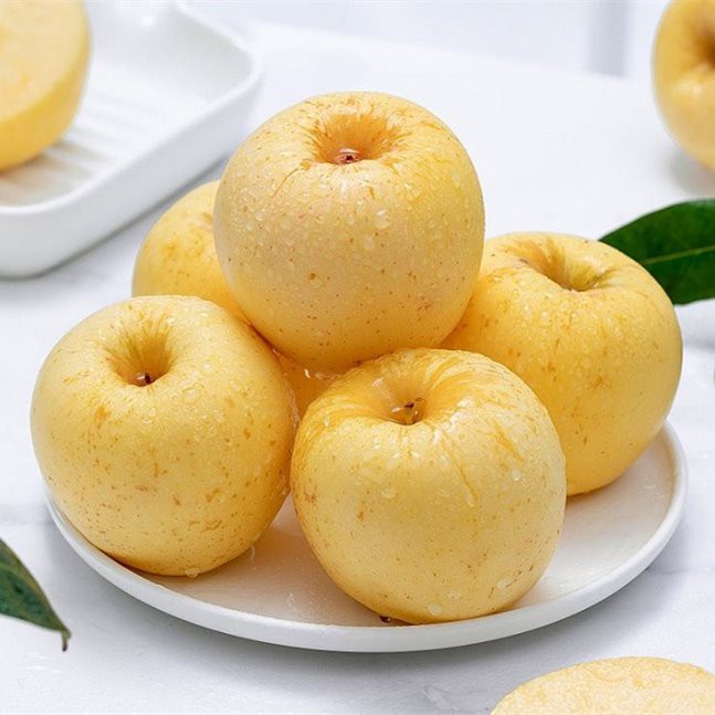 Buah epal emas adalah varieti Jepun yang diperkenalkan oleh Shandong, sebuah wilayah buah-buahan utama. Rasanya berbeza daripada epal biasa yang sentiasa mempunyai sedikit keasidan kononnya, dan rasanya hampir manis! Bukan sahaja manis, malah ia juga sangat rangup. Setiap gigitan adalah "klik" kerangupan, dan selepas makan epal, terdapat haruman madu buah yang kaya berlegar di dalam mulut.